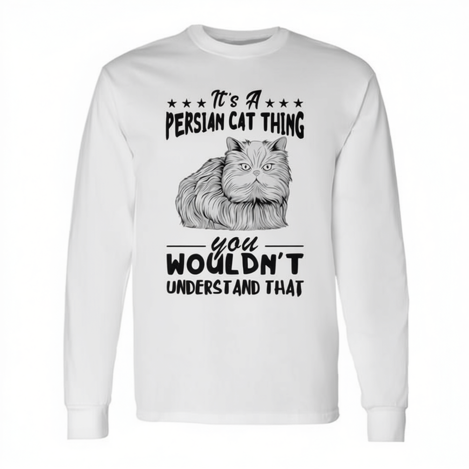 T-Shirt a Maniche Lunghe per Amanti dei Gatti Persiani, Design Elegante Promozionale per Appassionati di Felini