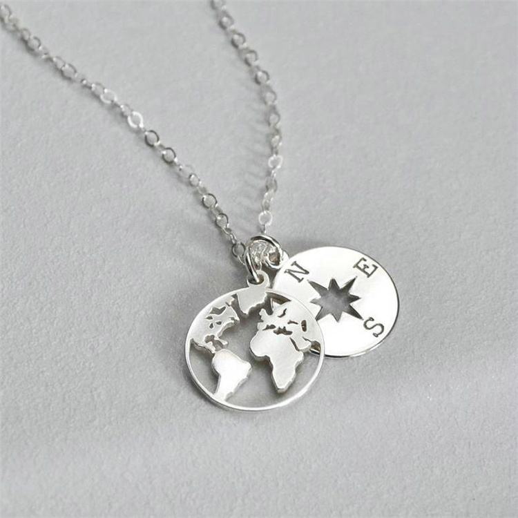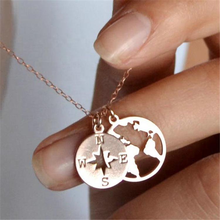 Personalizzato 18k oro Del Mondo Mappa e Bussola Collana di fascino del pendente Wanderlust Regalo in acciaio inox Gioielli viaggiatore
