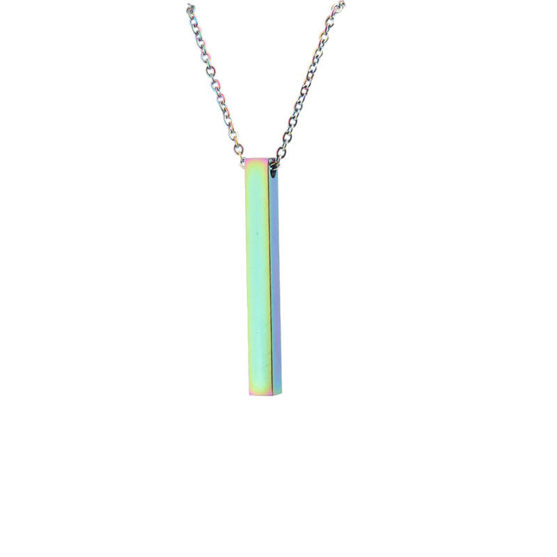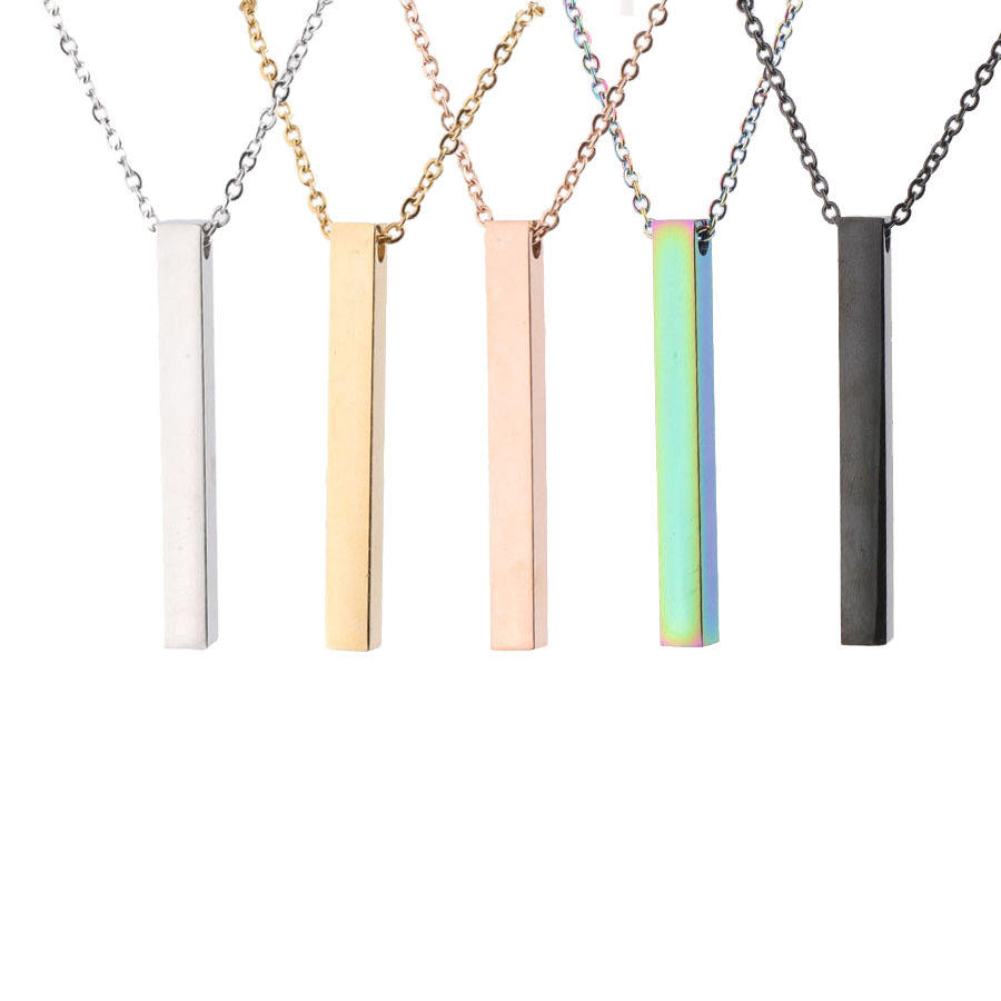 Collana Personalizzata con Nome, Ciondolo a Barra Rettangolare Verticale Sottile in Acciaio Inossidabile, Catena alla Moda