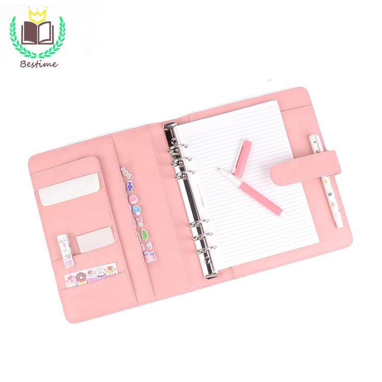 Personalizzato di lusso di modo riutilizzabile notebook A5 cuoio raccoglitore ad anelli in rosa