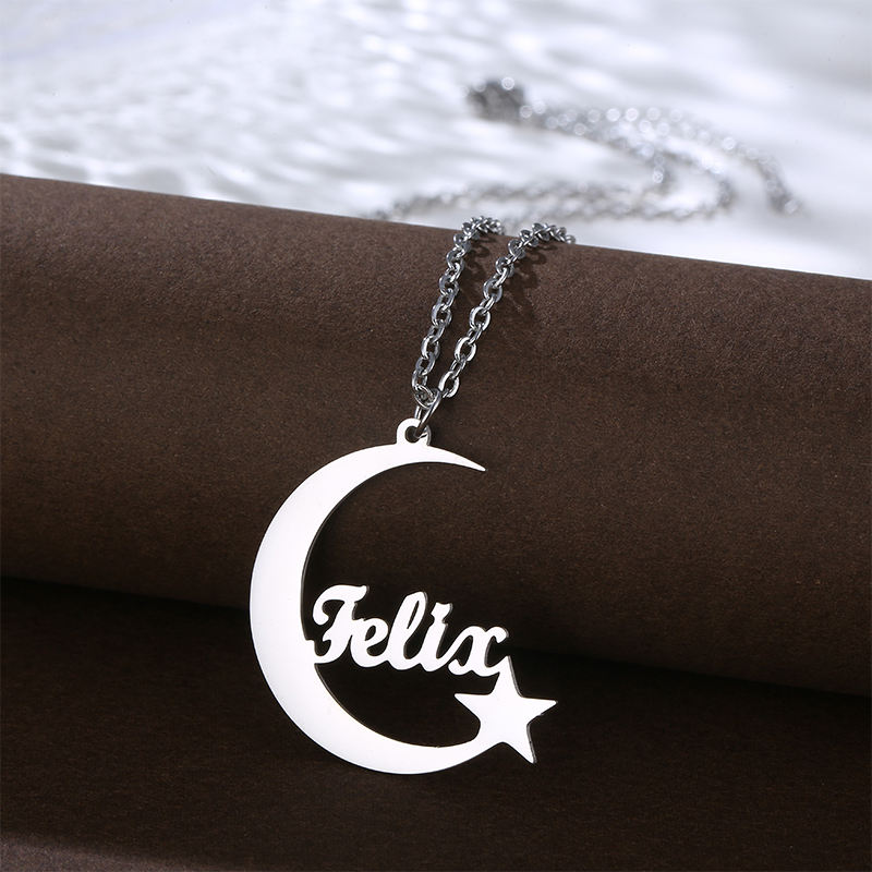 Personalised Moon Star Pendant Custom Name 18K Gold Plated Link Chain Necklaces for Women Classic Party Stainless Steel Jewelry