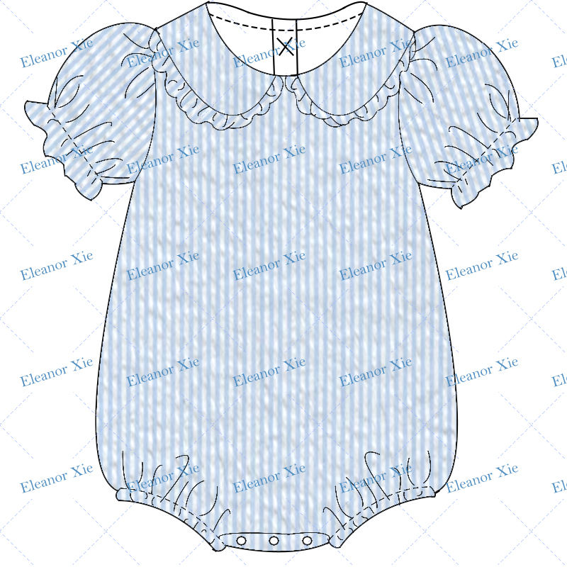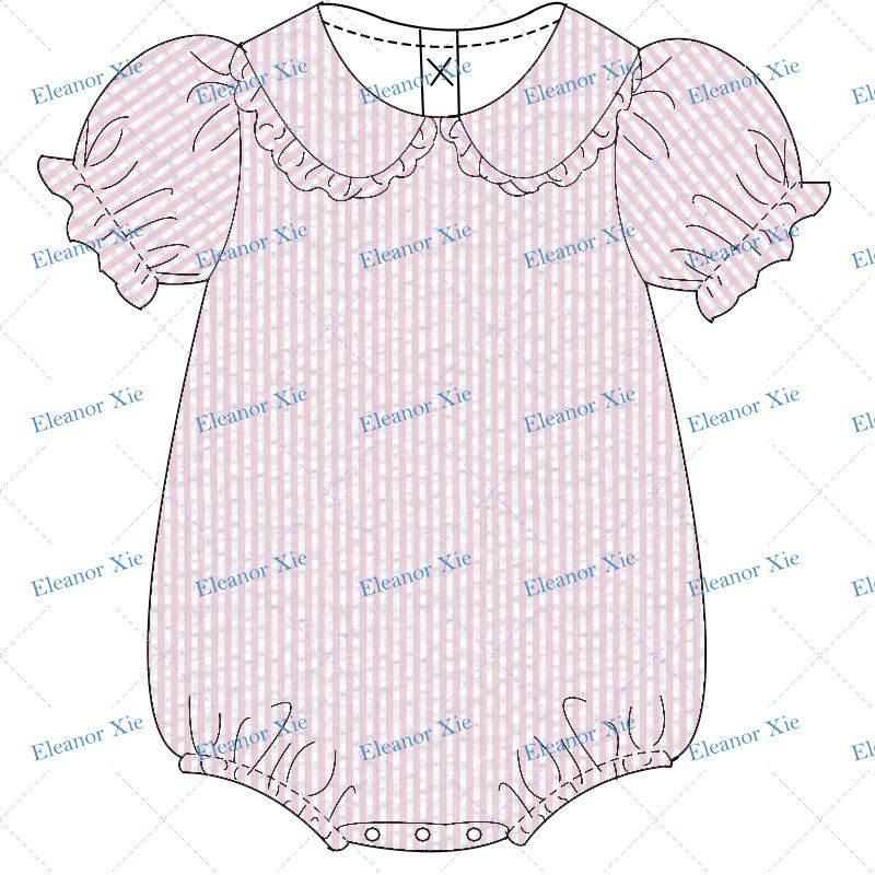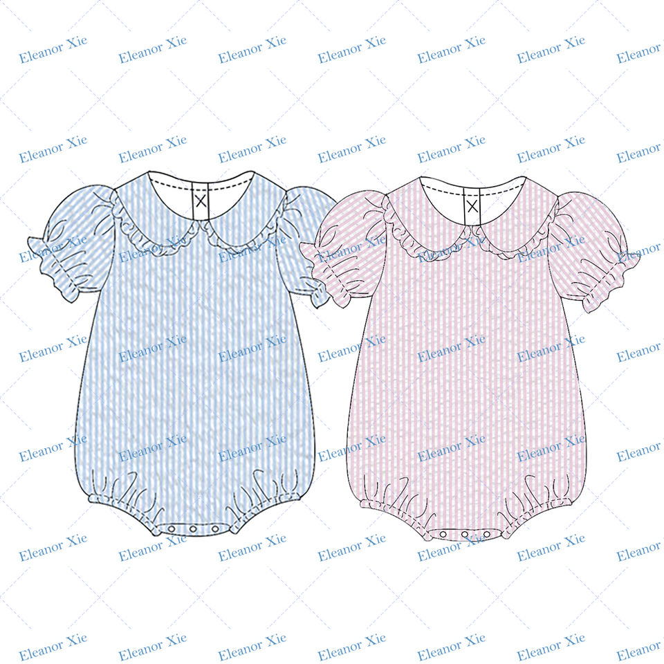 Personalised Short Sleeve Baby Girls Bubble Rompers Seersucker Cotton Peter Pan Collar Toddler New Born Clothes