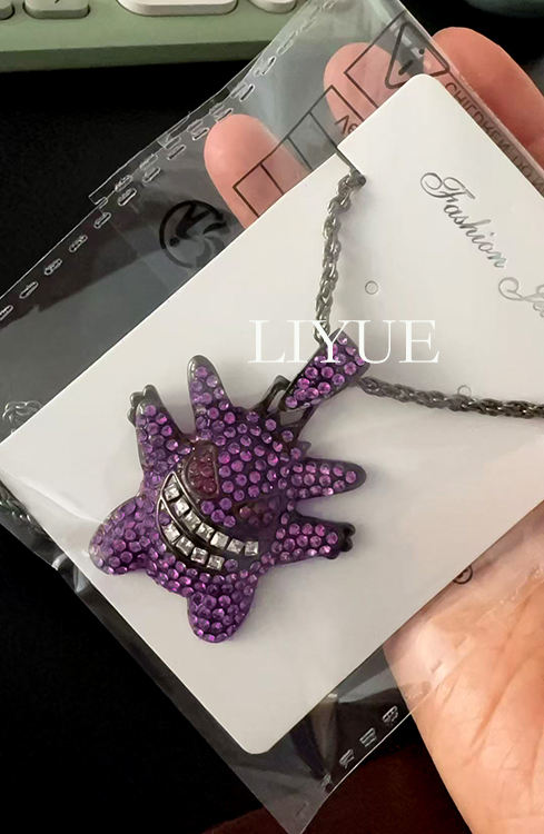 Collana Hip Hop con Ciondolo Gengar Cartoon Anime, Catena con Pendente a Forma di Piccolo Mostro con Diamanti