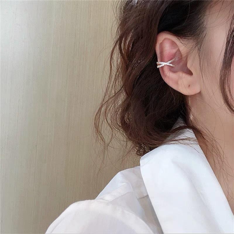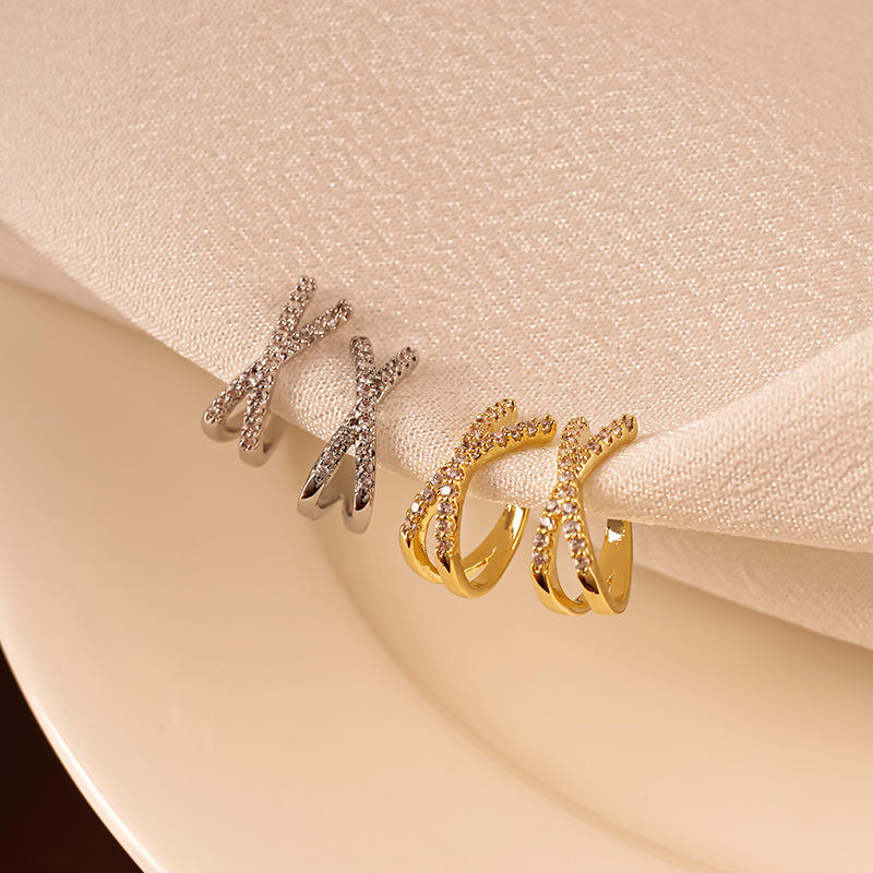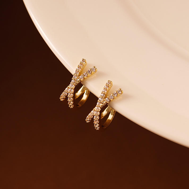 Orecchini a Clip con Croce e Doppia Linea di Zirconi, Gioielli Personalizzati, Ipoallergenici, Regolabili
