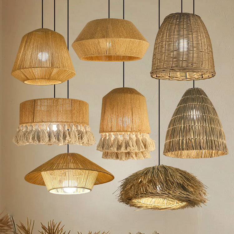 Lampada pendente in Rattan di personalità che intreccia appendere ristorante caffetteria Vintage bambù E27 lampadario