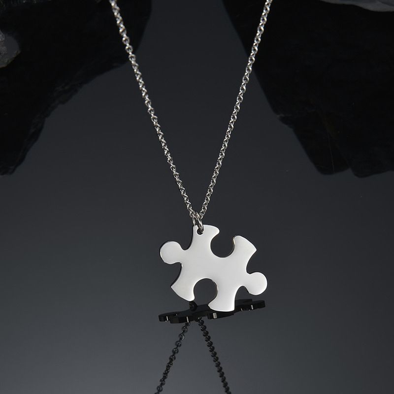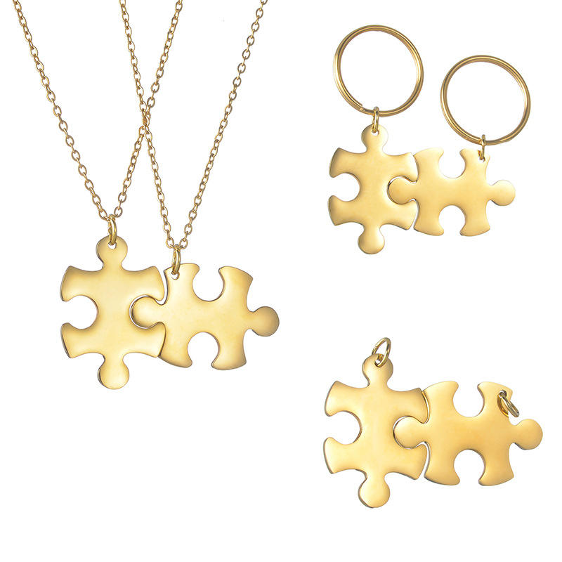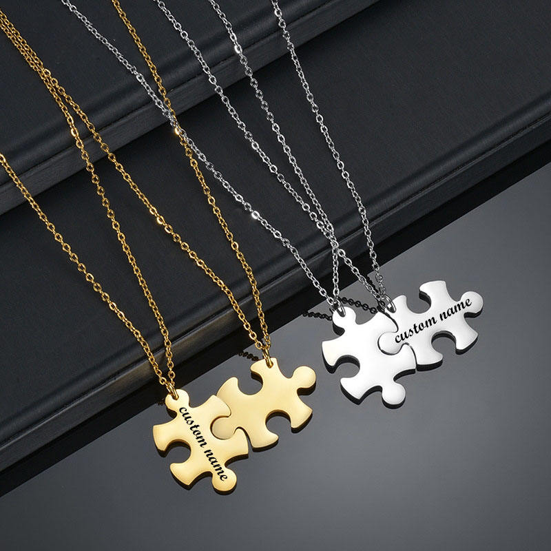 Personalize Jigsaw Puzzle Piece Kids Best Friends Lovers Hug Pedant Necklace Charms Stainless Steel Custom Engraved