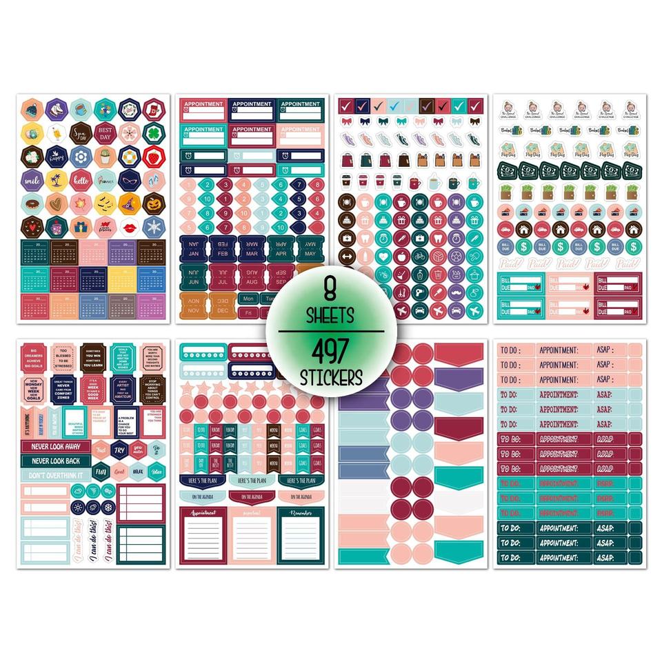 Adesivo personalizzato per pianificatore di diario di palestra di dimensioni 12*18cm 8 fogli (497 adesivi) adesivi per pianificatore di Budget in carta patinata