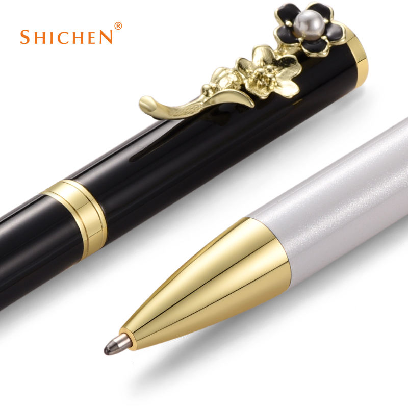 Scatola regalo di penne a sfera in metallo con fiore di lusso