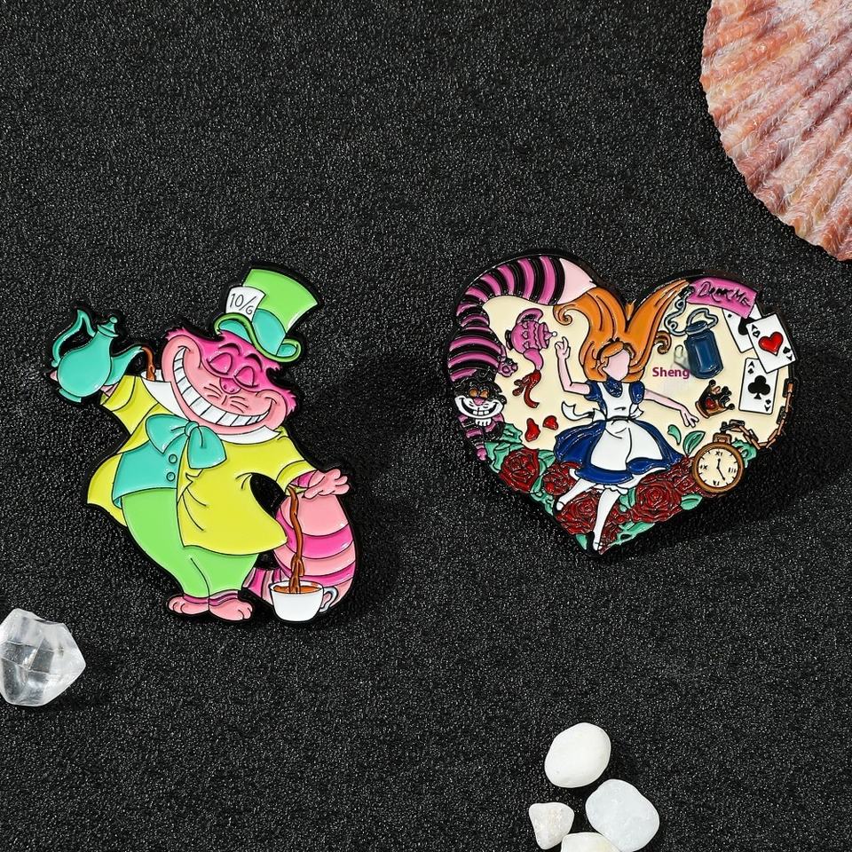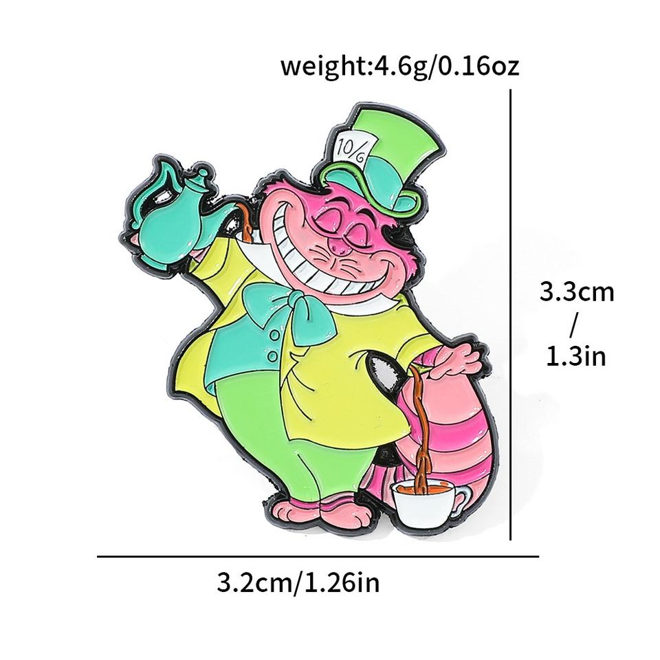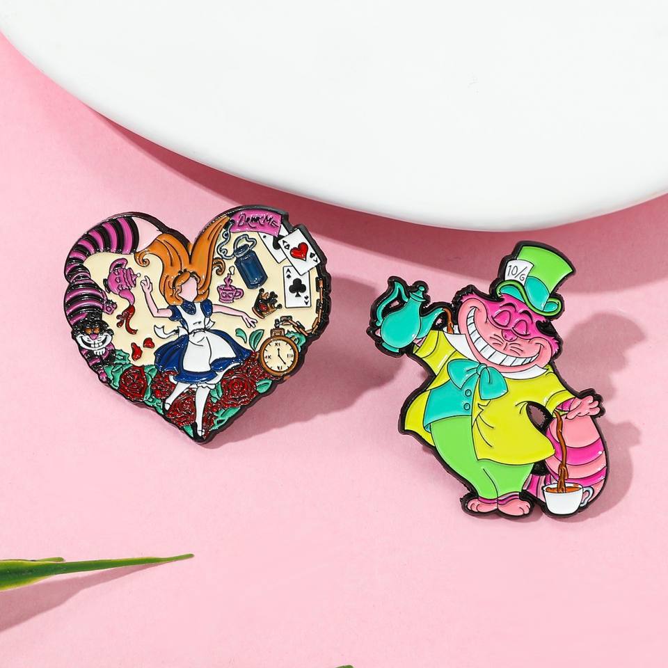 Personalizzato Alice Wonderland Cat spilla in lega a goccia di olio distintivo incisione in metallo placcato borsa anniversari