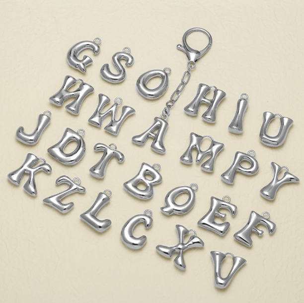 Portachiavi Personalizzato con Lettere a Bolla Placcato Oro 18k Anello Portachiavi con Iniziale Minimalista Accessorio per Borse
