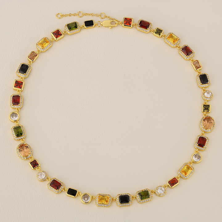 Personalized Colorful Zirconia Choker Chain Hip Hop Vintage 18K Gold Plated Multicolor Gemstone Stone Women's Necklace for Men