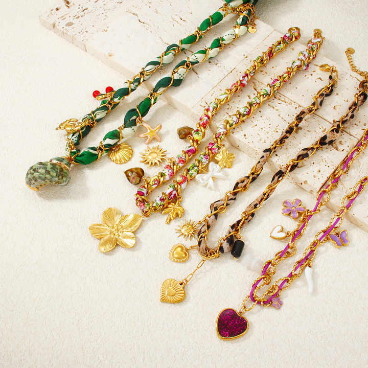 Collana Personalizzata con Catena in Acciaio Inossidabile Placcato Oro 18K, Ciondolo Multi-Elemento Fai-da-Te, Collana Colorata con Cordino, Regalo