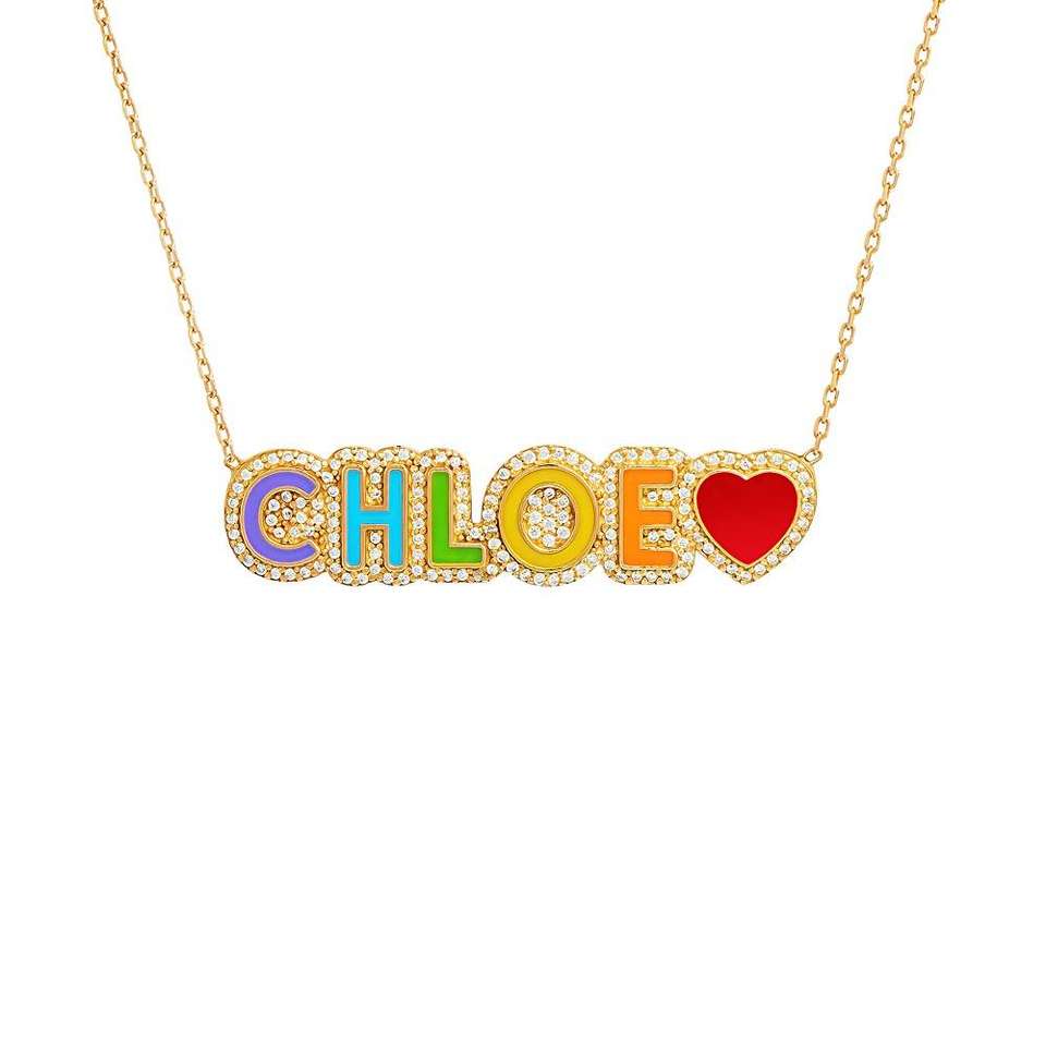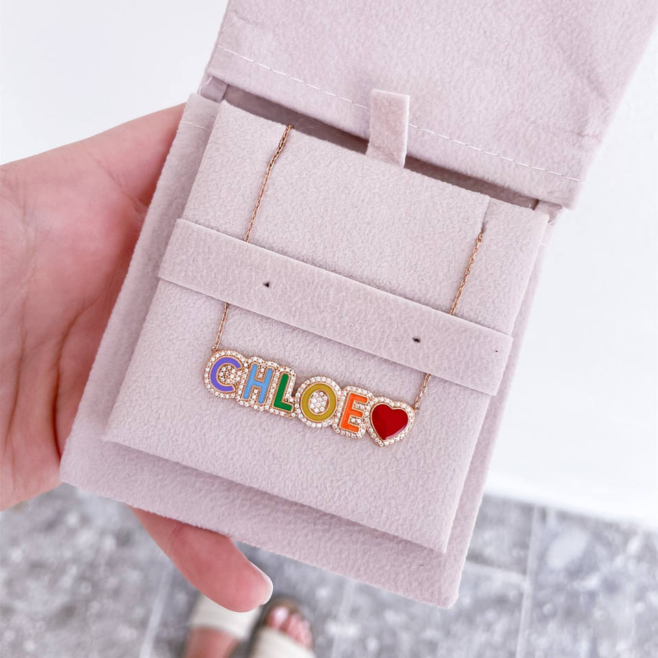 Collana personalizzata con nome di smalto personalizzato con ciondolo in smalto colorato gioiello arcobaleno collana con lettere classiche da donna 2 pz