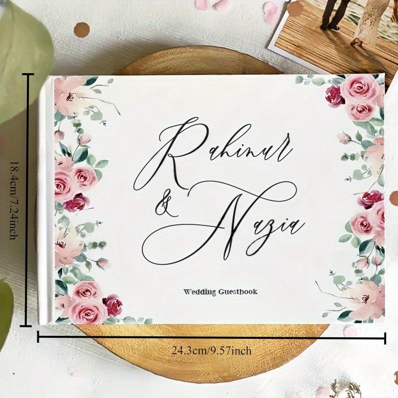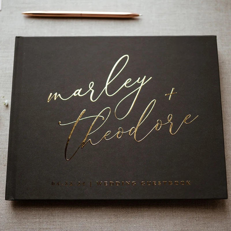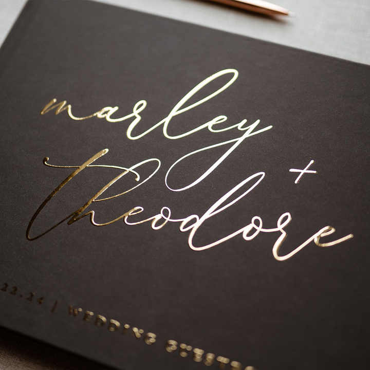 Personalized Elegant Black and Golden Wedding Guest Book Custom Names & Date Hardcover 100 Sheets