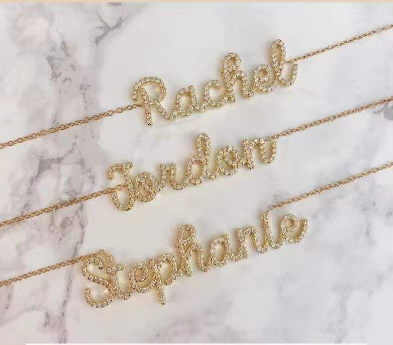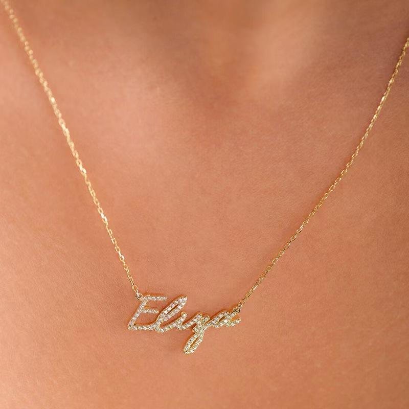 Collana Personalizzata con Nome in Inglese, Catena a Maglie Carina in Argento 925 con Zirconi