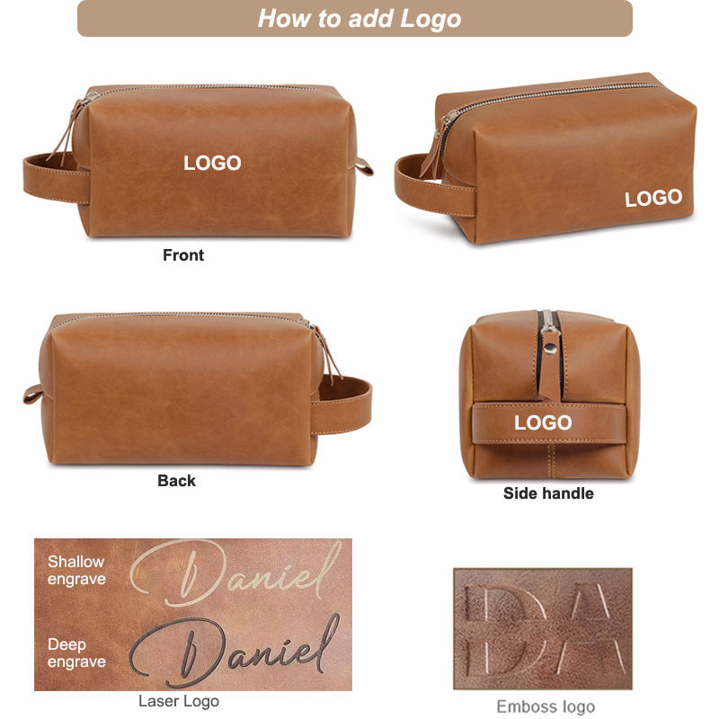 Beauty Case da Viaggio Personalizzabile in Pelle PU con Incisione Nome per Uomo, Borsa per Cosmetici Portatile