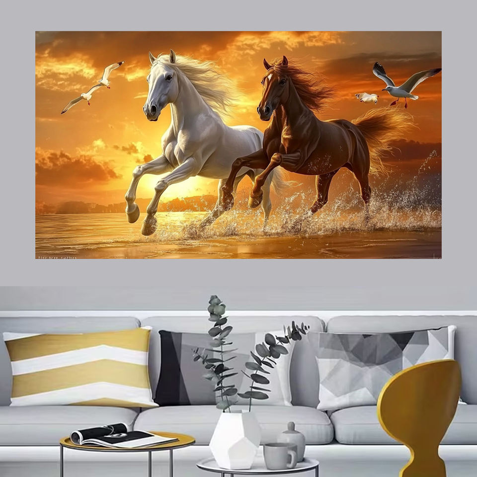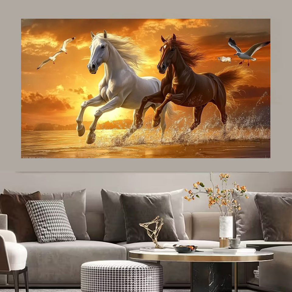 Murales Personalizzati Extra Large con Cavallo in Corsa, Arte Contemporanea su Tela, Design Paesaggistico, Dipinti e Stampe per Soggiorno