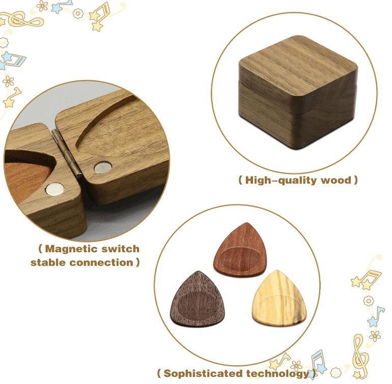 Personalized Guitar Picks Holder Wooden Guitar Picks Storage Box for Guitar and Bass Accessories