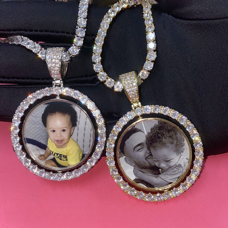 Collana con Ciondolo Portafoto Personalizzato con Zirconi Cubici Incastonati, Regalo per Famiglia e Fidanzate