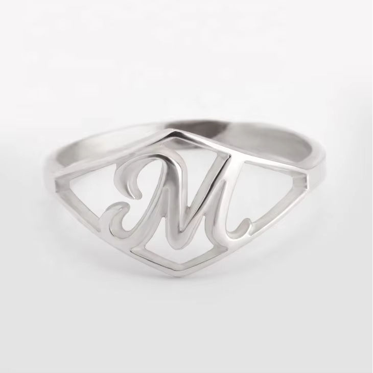 Gioielli personalizzati 925 argento Sterling placcato personalizzato anello con lettera A-Z iniziale