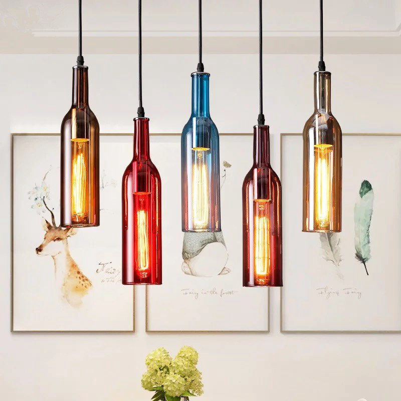 Lampada a Sospensione LED Personalizzata a Forma di Bottiglia, Lampada Colorata per Ristoranti, Bar, Caffè, Negozi, Decorazione Colorata