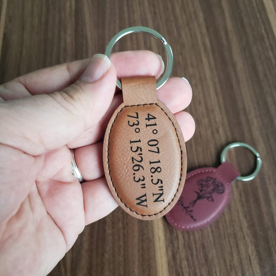 Portachiavi Ovale in Pelle PU Personalizzabile con Incisione Laser, Portachiavi in Similpelle Personalizzabile