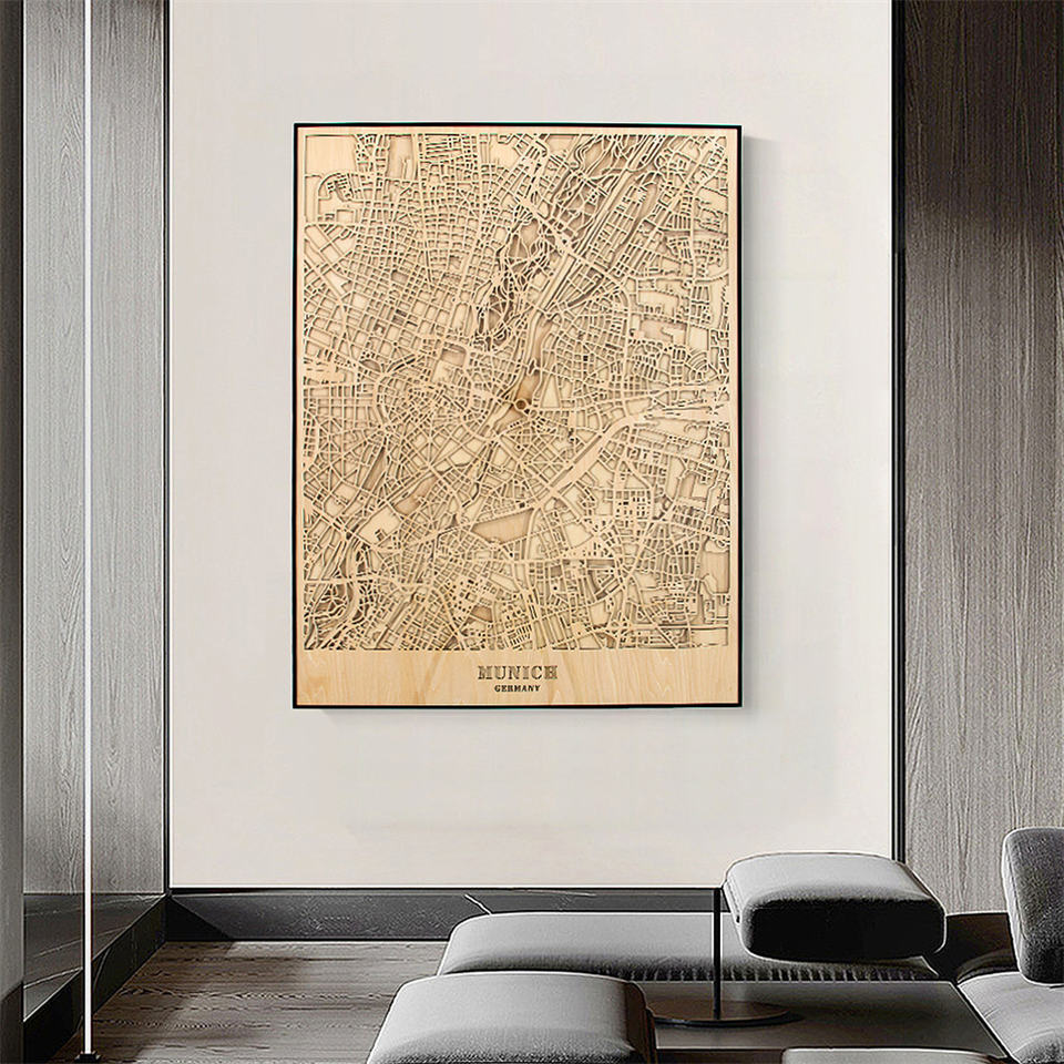 Incisione laser personalizzata Woodcut Map Art 3D City Street Map per accessori per la decorazione domestica