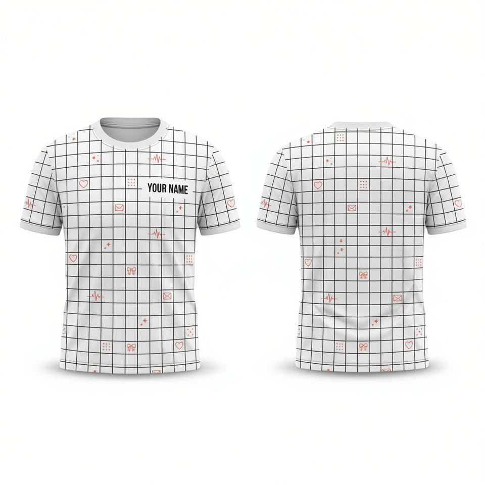 Camicia a griglia minimalista personalizzata con nome personalizzato, motivo a cuore EKG, regalo di San Valentino, stampa integrale unisex