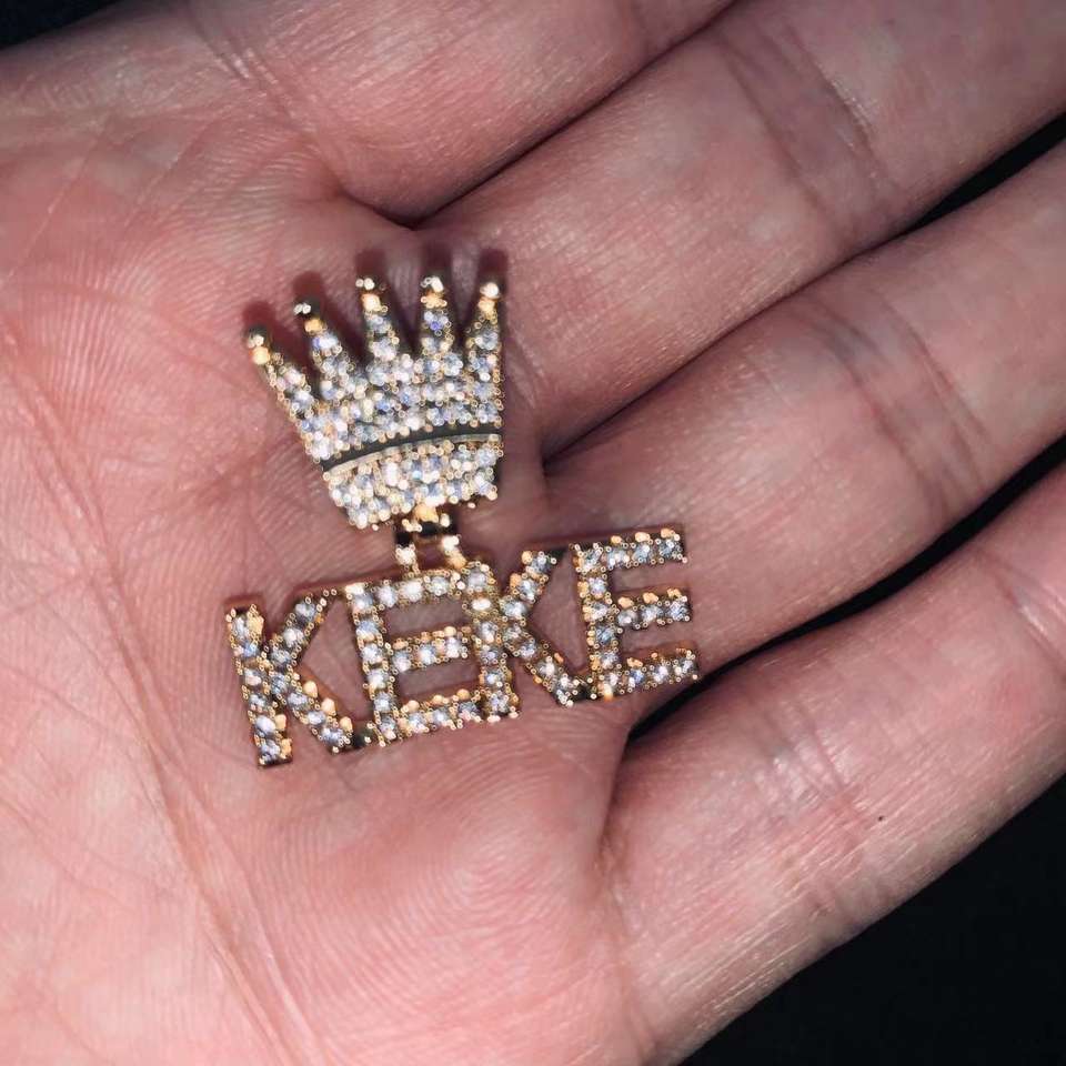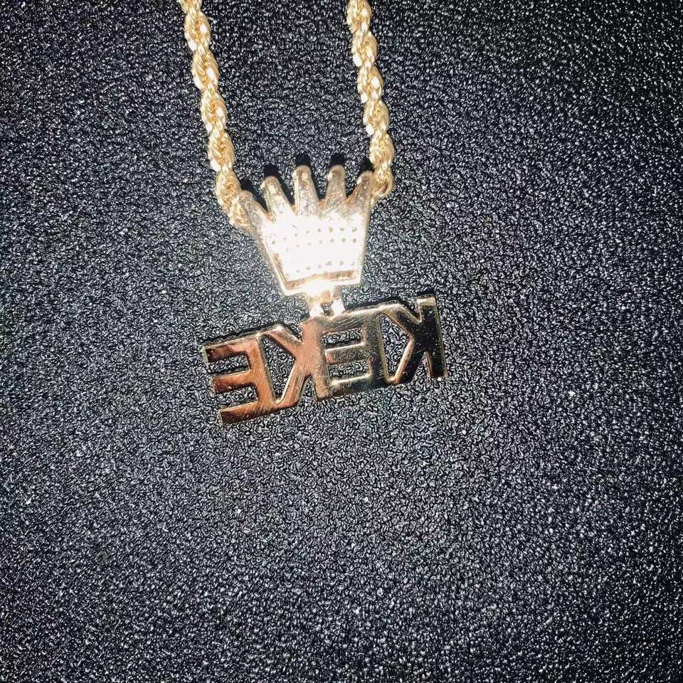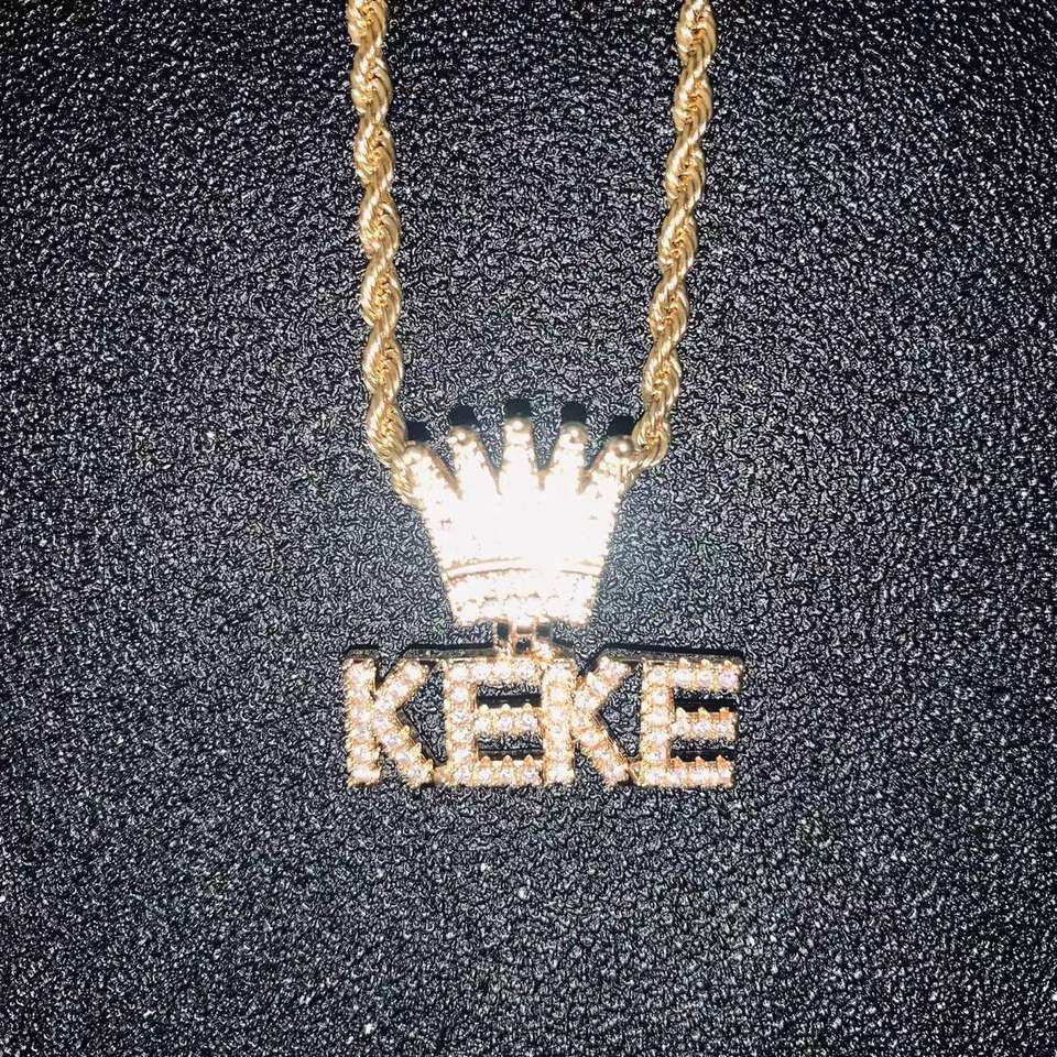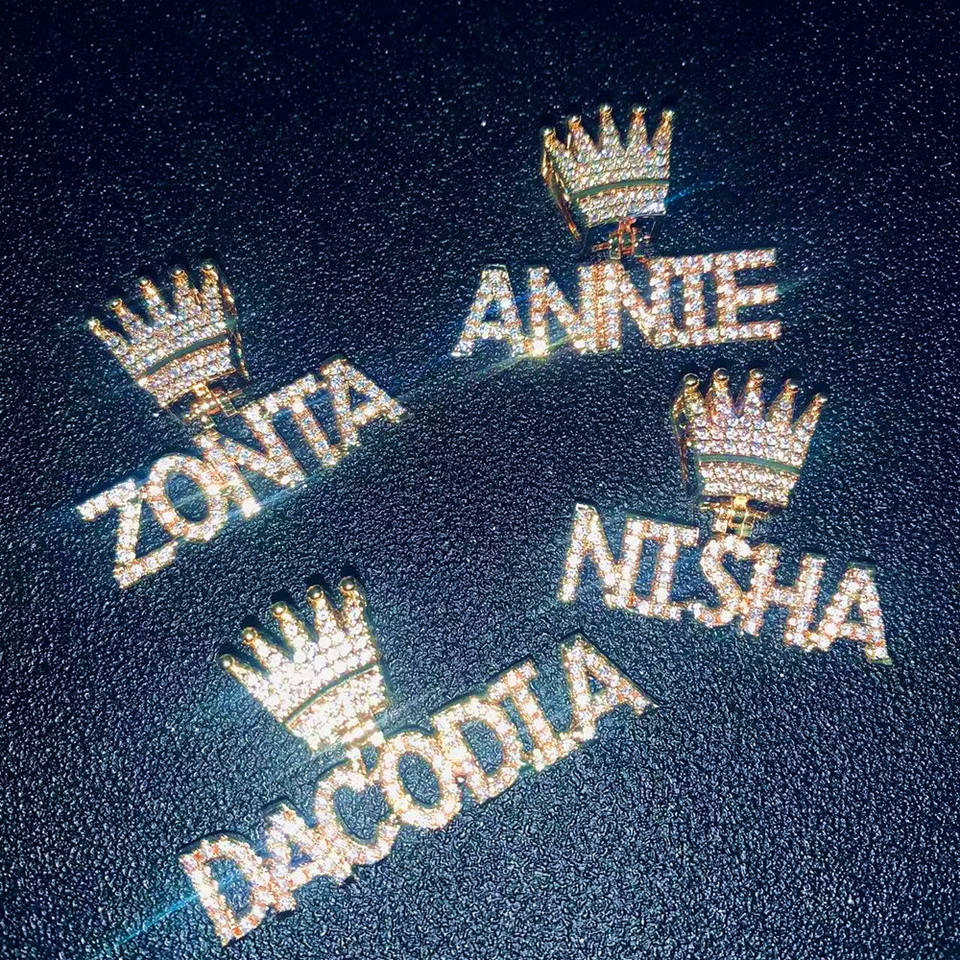 Personalized Name Children's Brass Iced Pendant Necklace Small Letters Crown Design Gold Plated Rope Chain Bling Zircon Stones