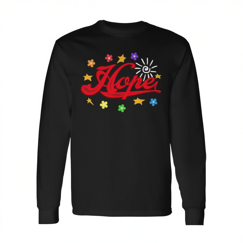 T-shirt a maniche lunghe personalizzata con nome, fiori e stelle sul palco, T-shirt promozionale Hope