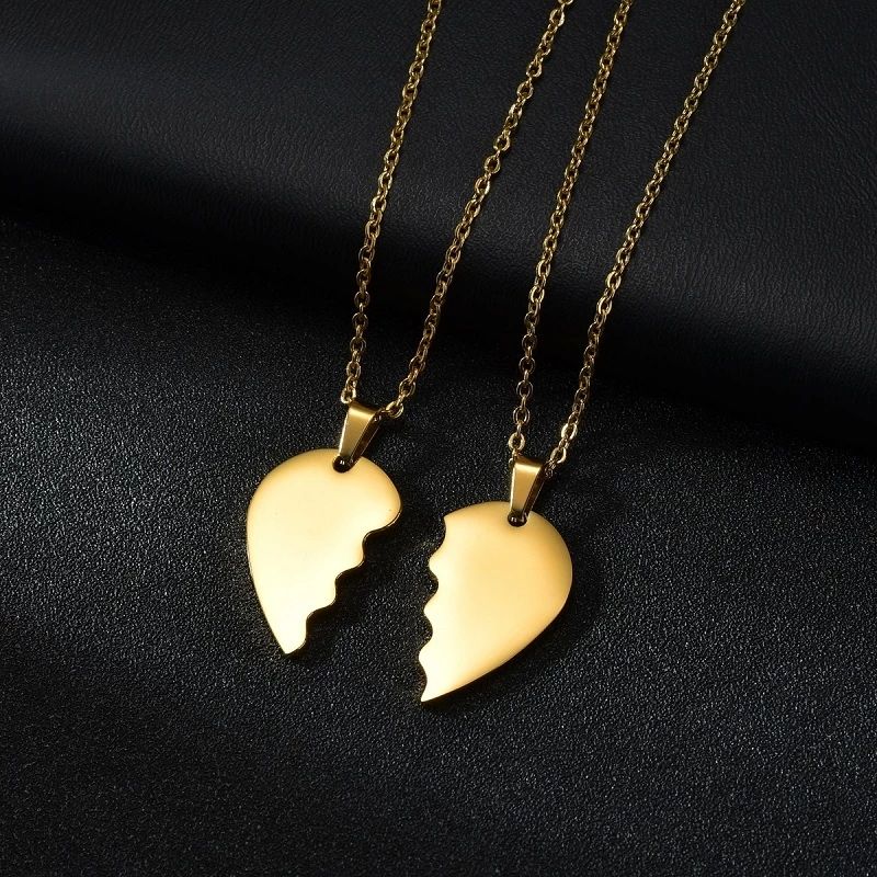 Nomi personalizzati in acciaio inossidabile con incisione nome Double Hearts collane a forma di colore oro