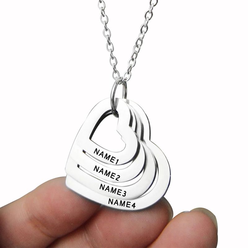Personalized Necklace Custom Family Names Stainless Steel Heart Engraved Pendants Necklace for Women Mother Lover Jewelry