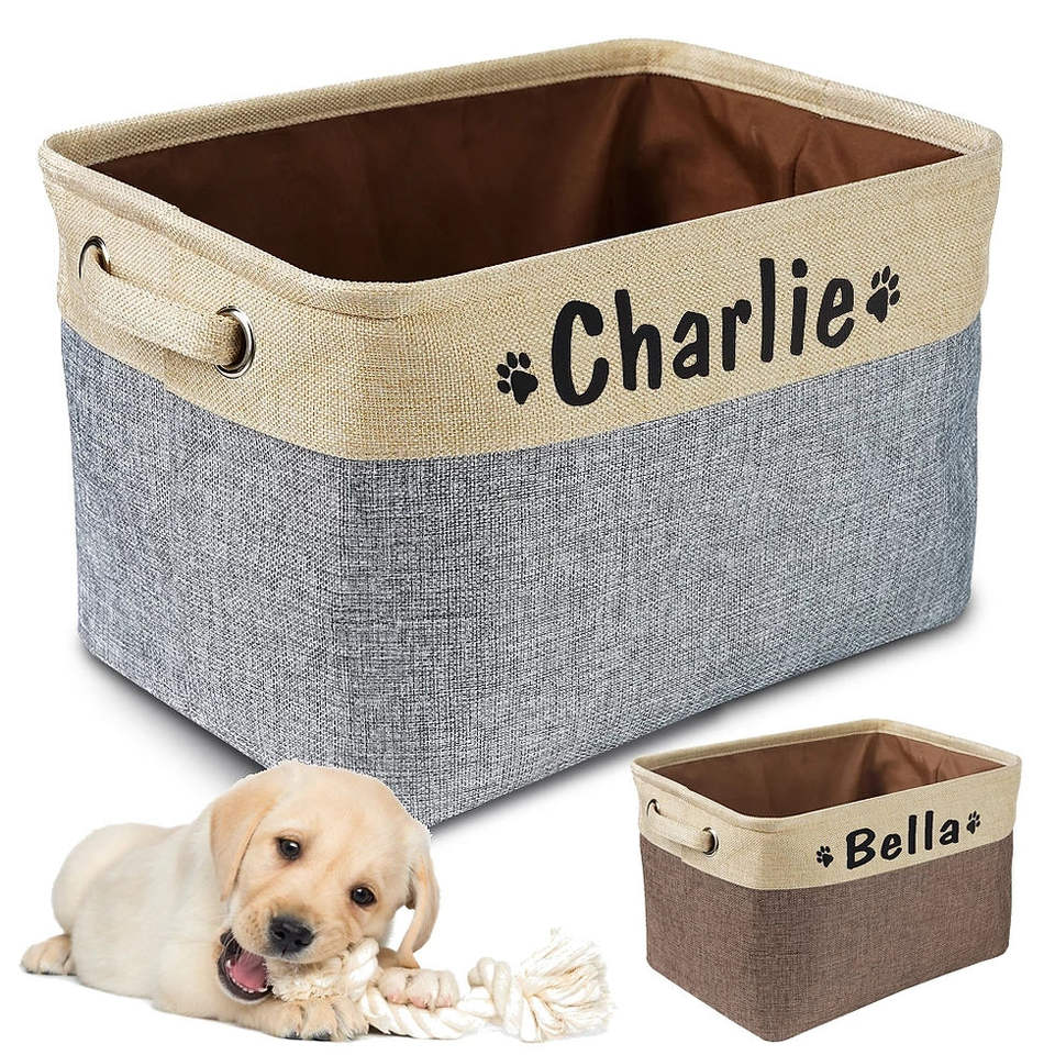 Personalized Oval Pet Toy Storage Basket with Handles Stackable Fabric Woven Kitchen & Outdoor Use Available in Various Colors