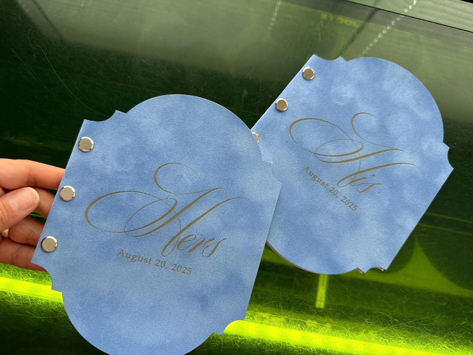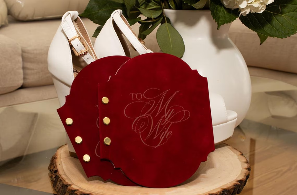 Set di Libretti Voto Nuziale di Lusso Personalizzati con Copertina in Velluto per Lui e Lei, Carta di Cotone Premium 300gsm con 4 Pagine Interne Vuote