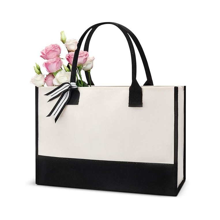 Personalized Shopping Beach Bridesmaid Gift Embroidered Initial Carry-On Canvas Bags With Custom Printed Logo