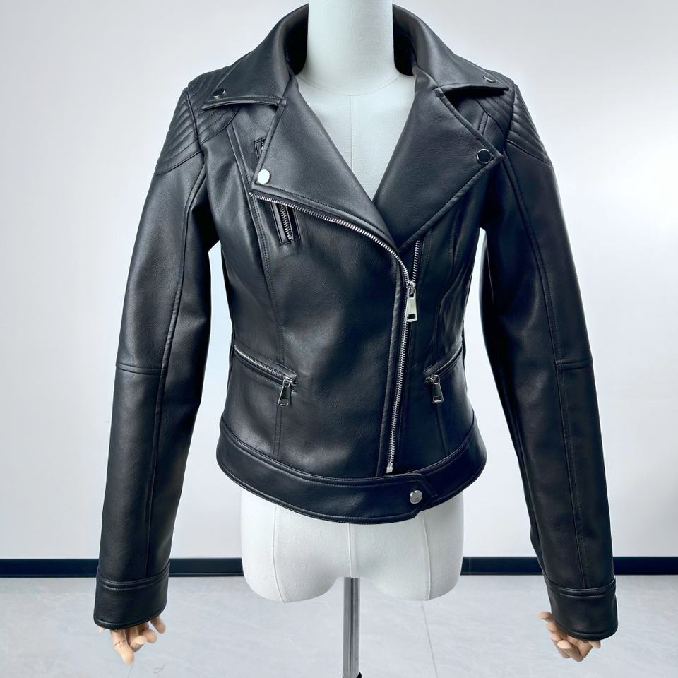 Giacca in Pelle Corta Personalizzata da Donna, Giacca in Pelle Nera Punk Cool, Personalizzazione di Fabbrica, Vendita Diretta