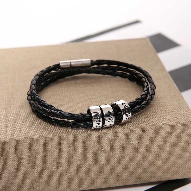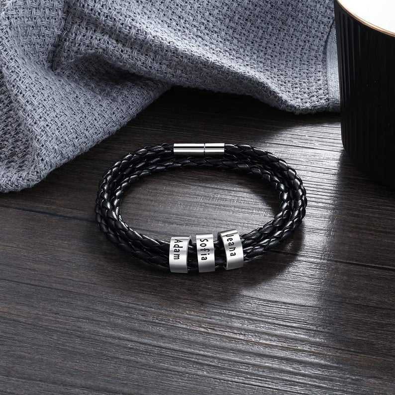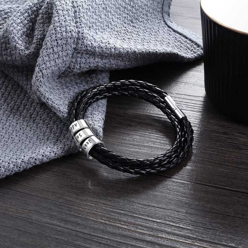 Personalizzata In Acciaio Inox Uomini Braid Braccialetto Nero con Piccolo Personalizzata Perline Accessori, Braccialetto di Cuoio