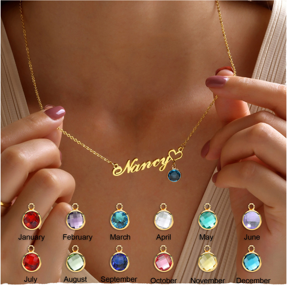 Personalized Stainless Steel Nameplate Necklace with Birthstone Customizable Letter Shape Link Chain for Wedding or Party