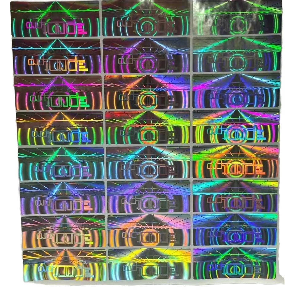 Etichette di Sicurezza in Vinile Olografico Laser Dinamico con Testo e Motivi Personalizzati, Effetto Arcobaleno Cangiante ad Alta Definizione