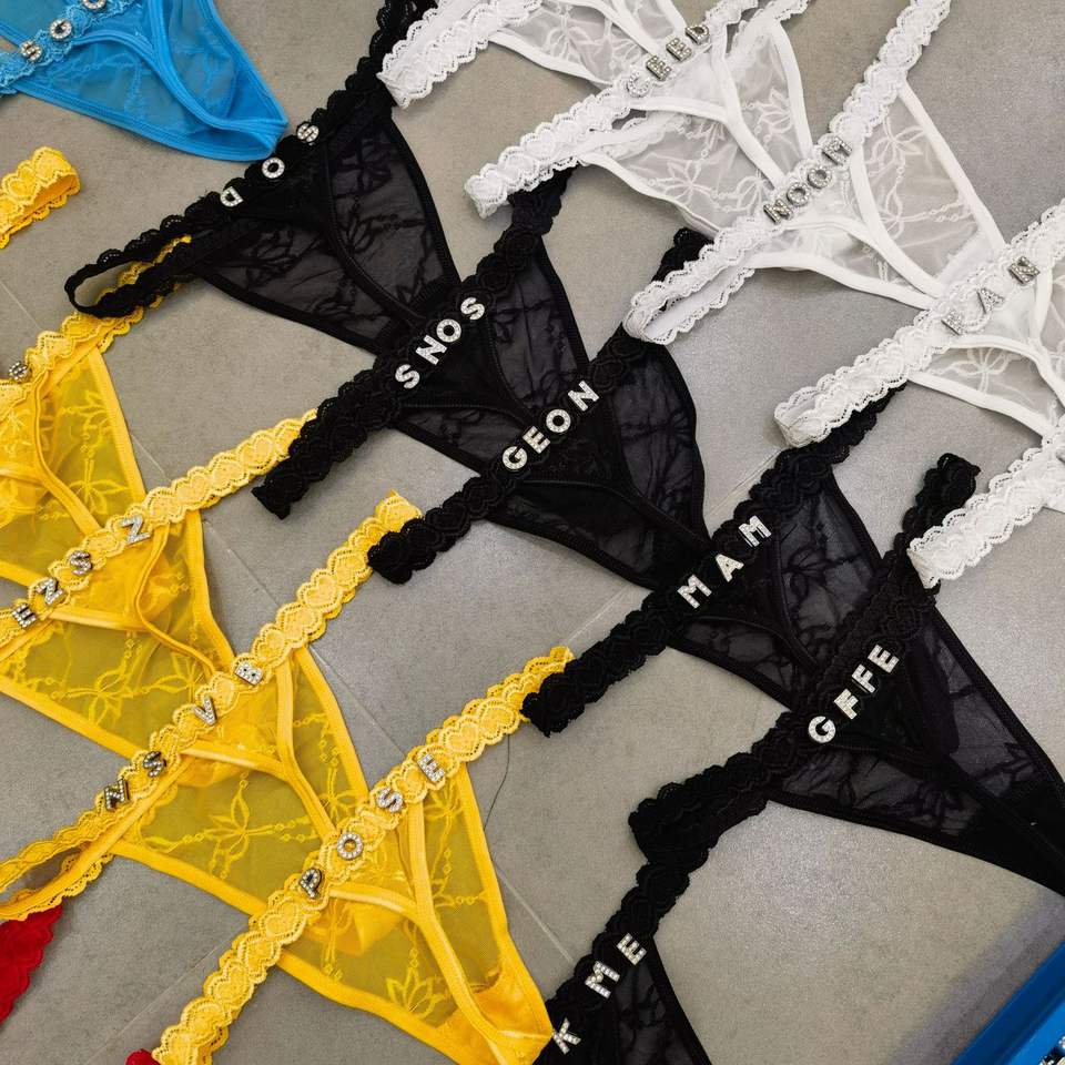 Personalized Thongs Custom Printed Thong With Names Rhinestone G String Bikini Thong Sexy Lace Women Panties Customized Logo