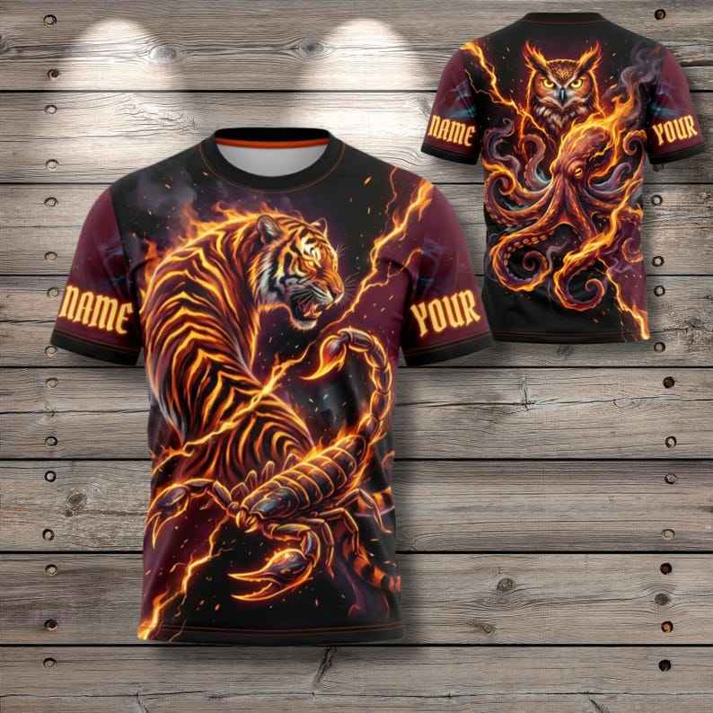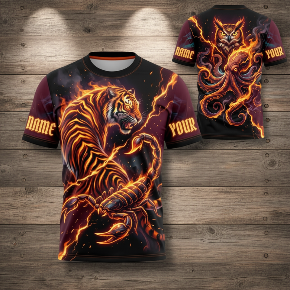 Maglietta personalizzata Tiger Scorpion con nome personalizzato Fire Fantasy AOP Tee