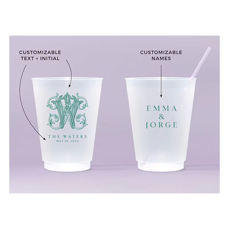 Bicchieri in Plastica Opaca Riutilizzabili Personalizzati Impermeabili Stile Romantico per Bomboniere e Feste Nuziali con Logo Personalizzato