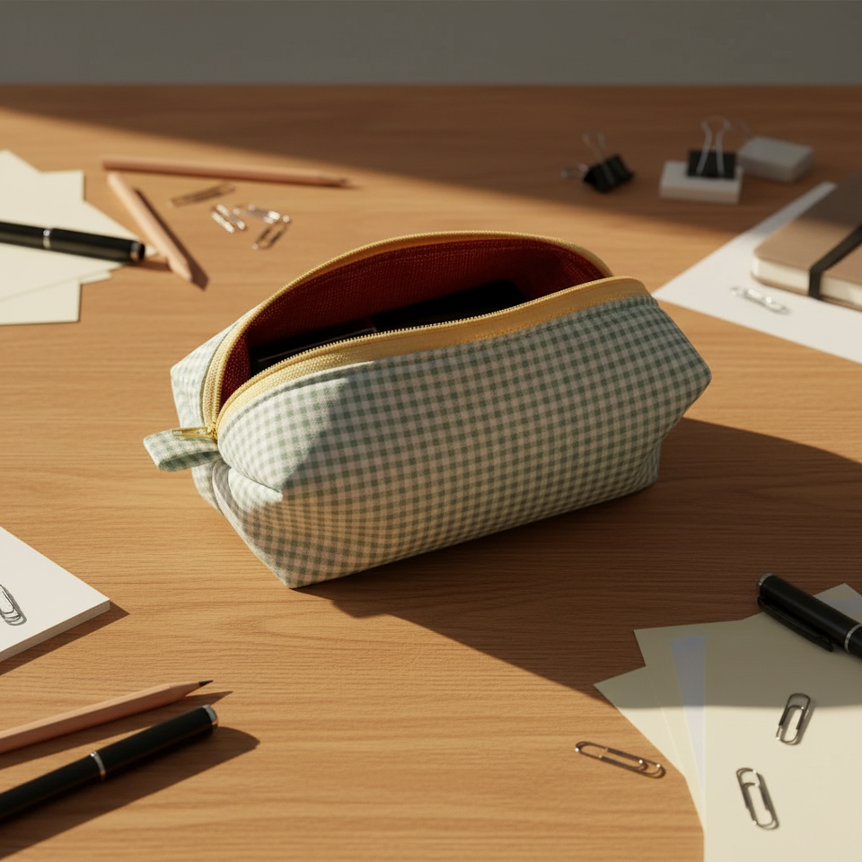 Personalized Wholesale Green Fashion Plaid Zipper Makeup Bag Toiletry Travel Cosmetic Bag for Girls