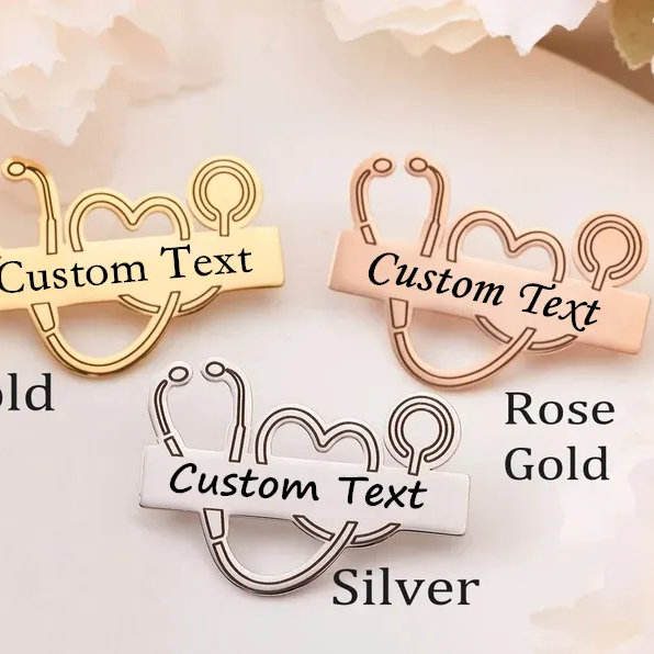 Spilla Personalizzata con il Tuo Nome, Accessorio Unisex per Stetoscopio, Set di Gioielli con Logo