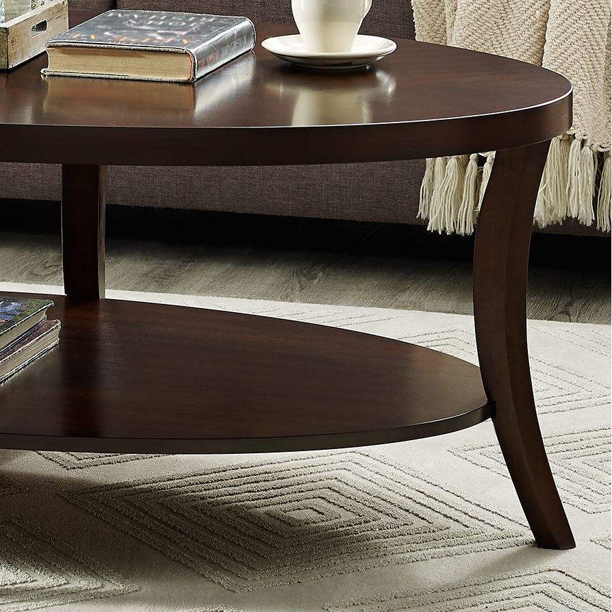 Tavolino da Caffè Ovale Perth Espresso con Ripiano Integrato, Design Elegante per Arredamento Casa
