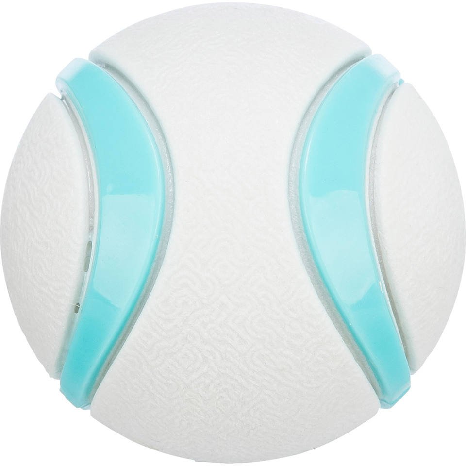 Giocattolo a forma di palla per animali domestici 6 cm bianco con strisce turchesi per cani e gatti