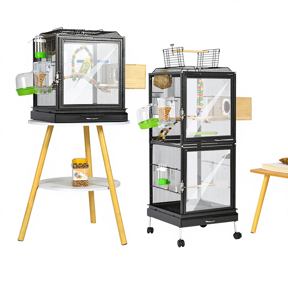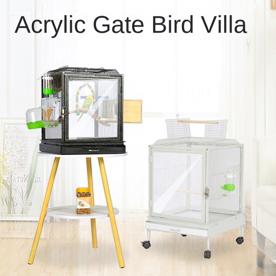 Pet Bird Cage Diacryl Transparent Luxury Aluminum Alloy Base for Starling and Large Parrot