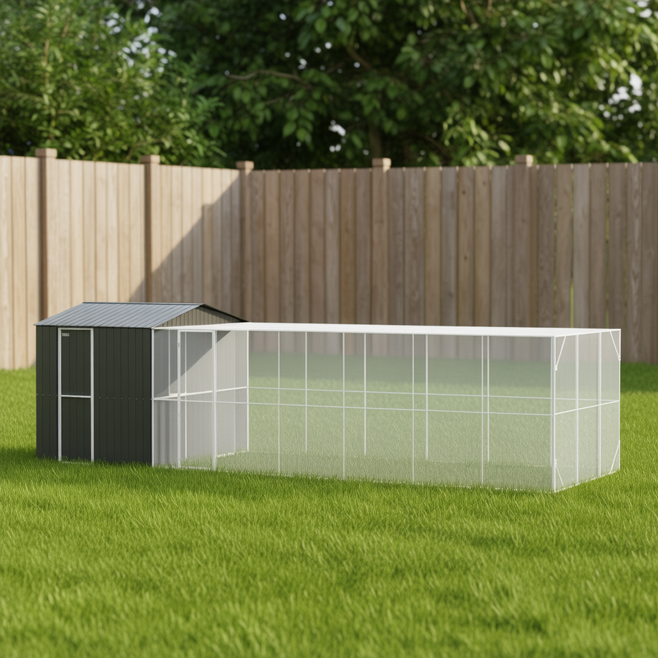 Gabbia per animali domestici 332.68 x 119.69 x 97.24 pollici con spazio di stoccaggio per uccelli, struttura in metallo e filo d'acciaio per esterni, design moderno