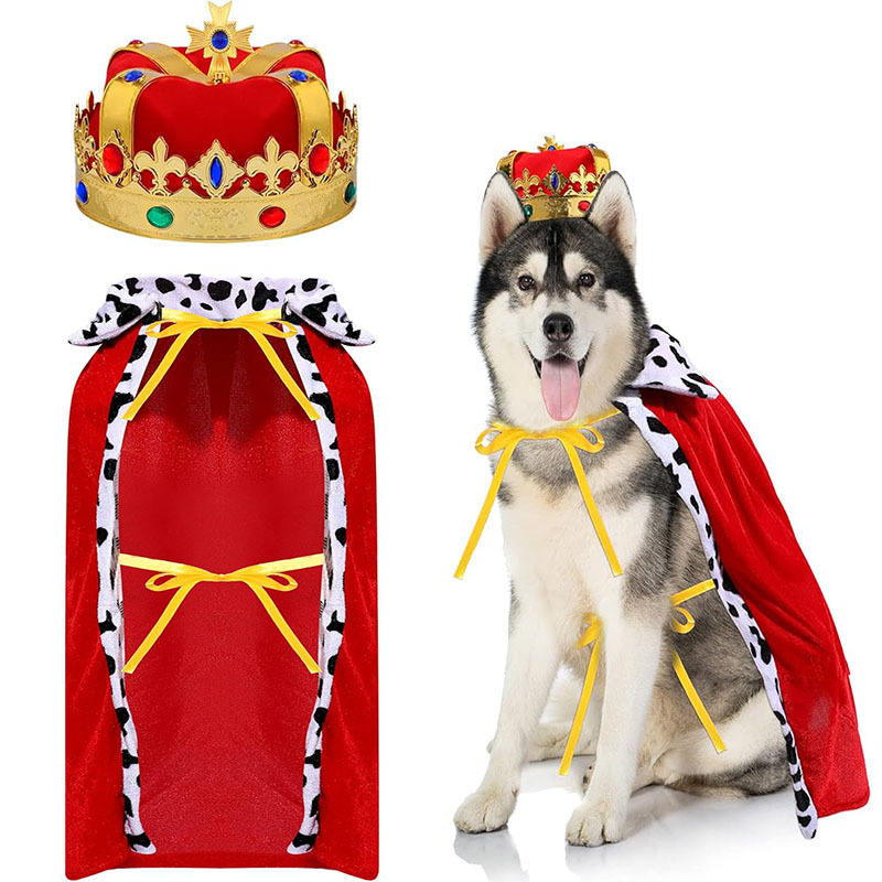Costume del re del gatto con mantello rosso e corona d'oro, vestito del principe del re di Halloween costumi di Halloween per gatti cani di piccola taglia