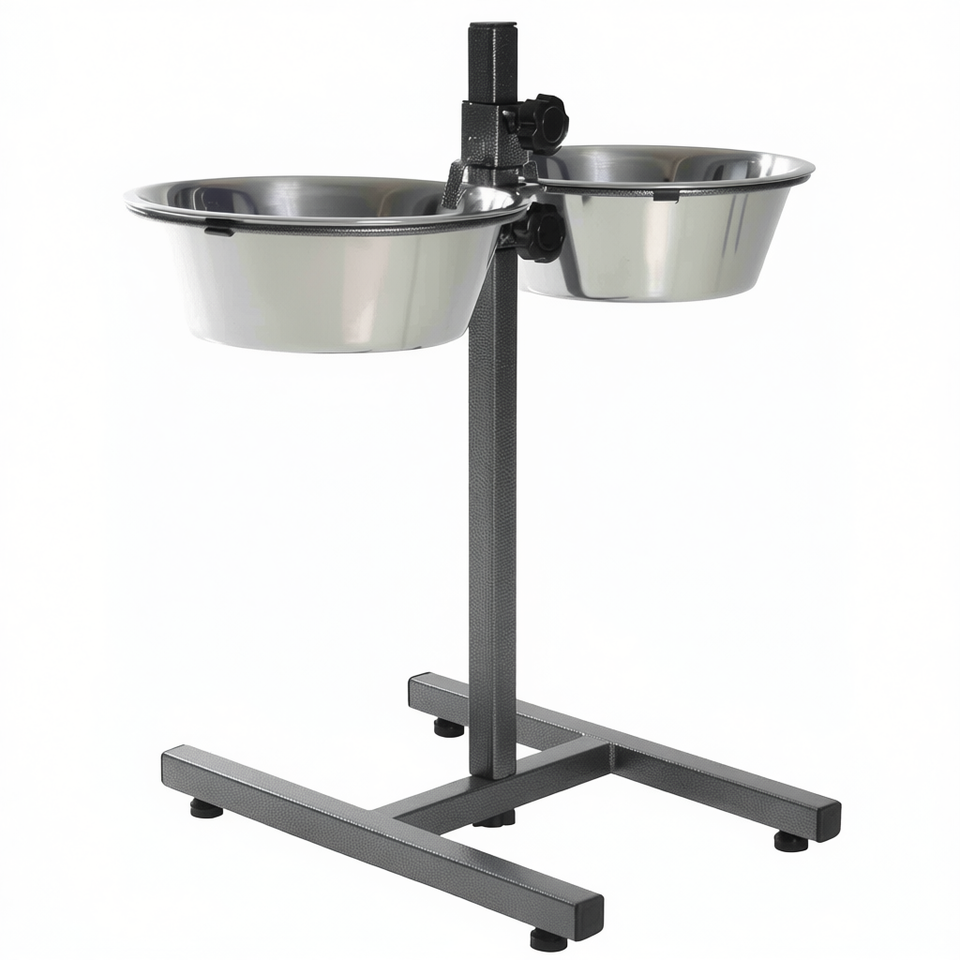 Stazione di Alimentazione per Animali Domestici con 2 Ciotole in Acciaio Inox, Base a Forma di H, Altezza Regolabile per Cani e Gatti